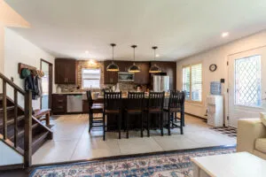 Quartz countertops and island
