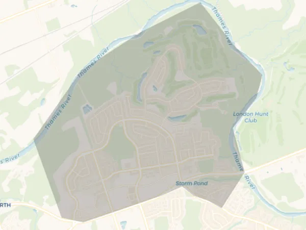 The gated Riverbend Golf Community is attractive and offers its members security, clubhouse facilities and dining. The Riverbend area is 11 minutes or less from downtown London. There are great nature trails, bike paths, golfing, or just not doing anything; you will enjoy the quiet. Five golf courses are within 4 km.